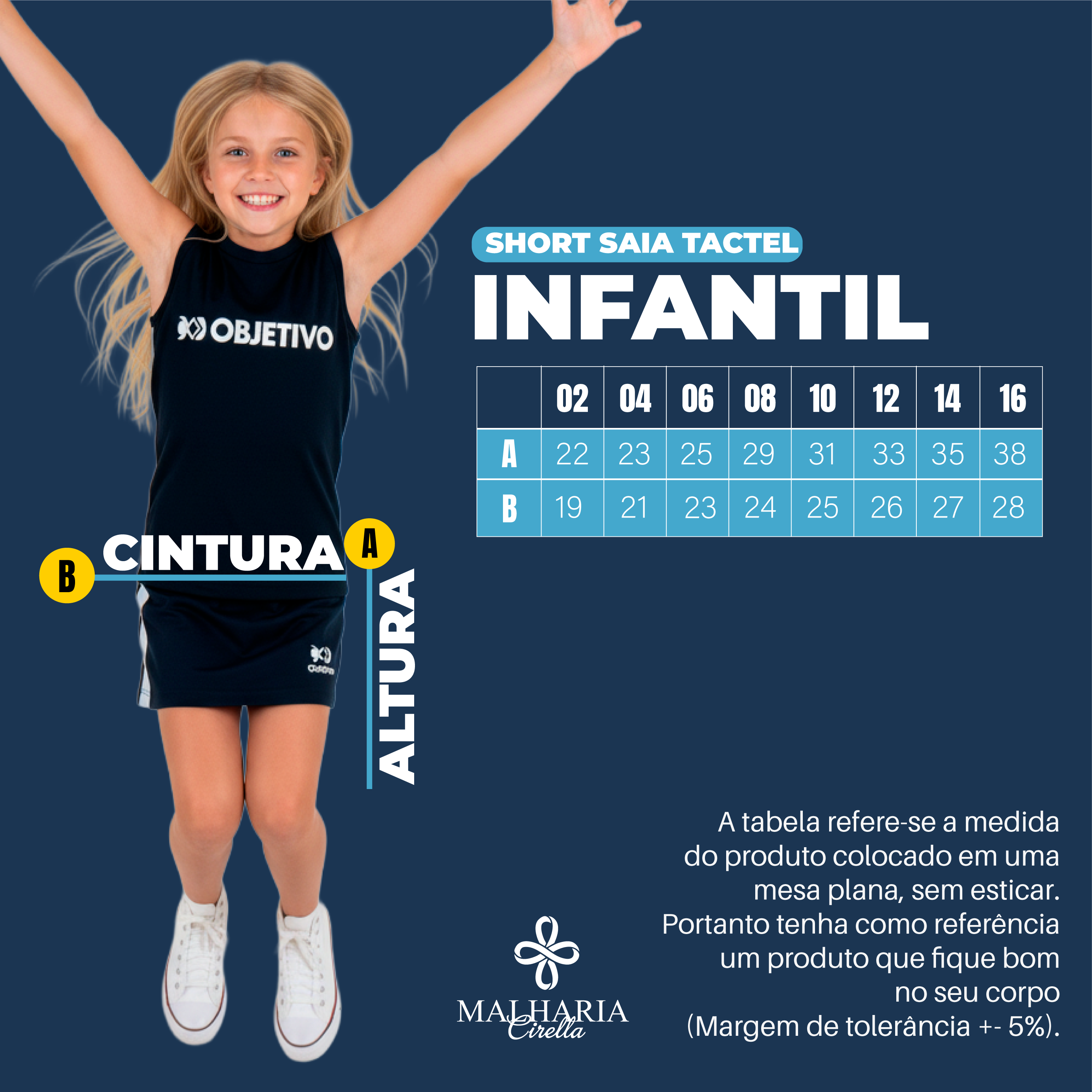 Short saia escolar em tactel leve e confortável. Possui elástico na cintura para melhor ajuste e liberdade de movimento. Ideal para o dia a dia e atividades escolares.